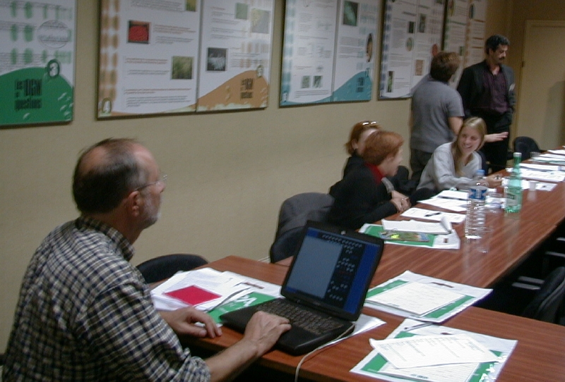 Discussions during the meeting (from left to right): Marc Vaitilingom, Stéphanie Warnon, Jean-François Seyler, Alejandro Ferrando, Yves Bertheau, Patrick Philipp, José Remacle, Shirin Bruderer and Othmar Kaeppeli. (To see it real big, please click on the picture.)